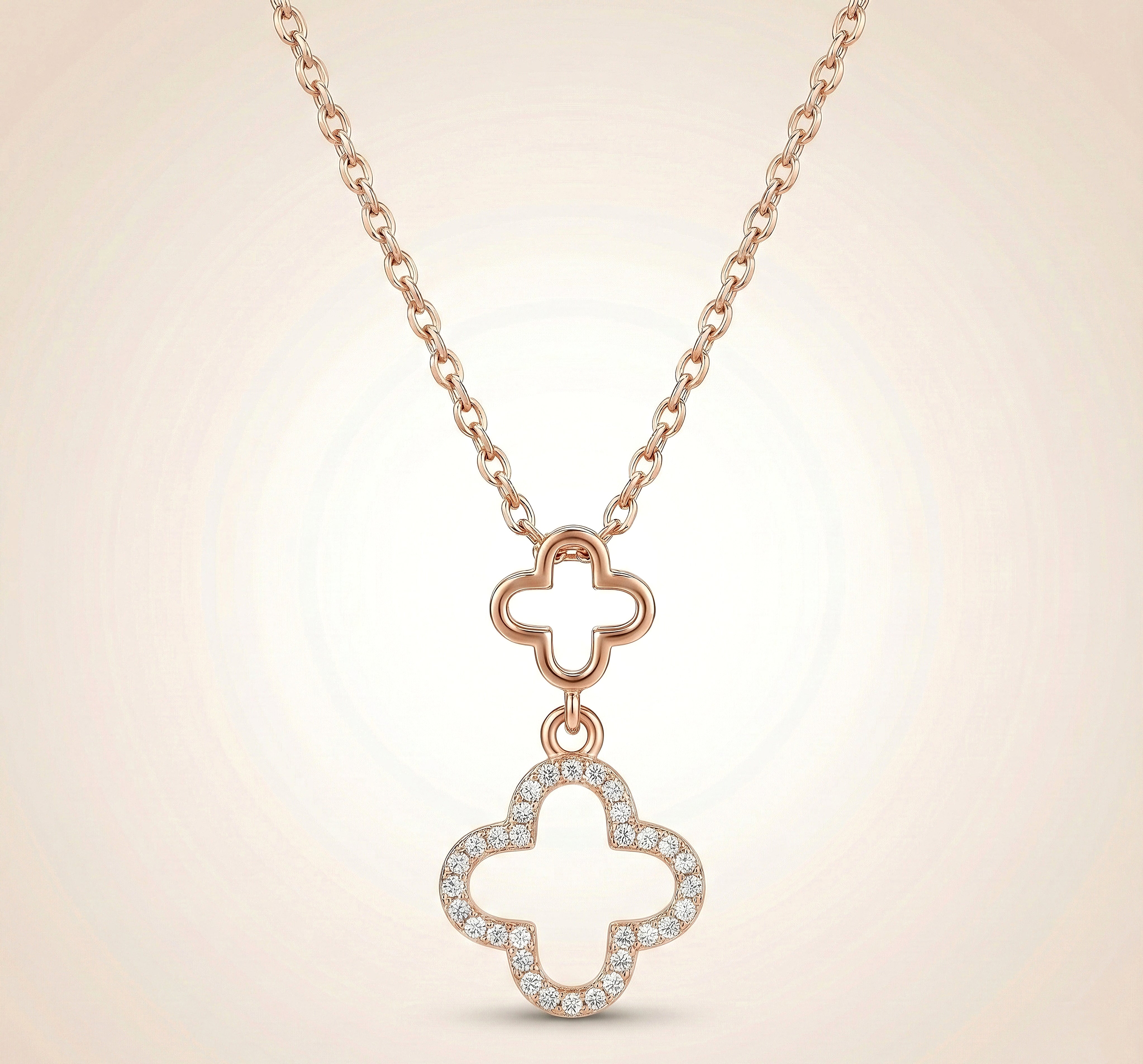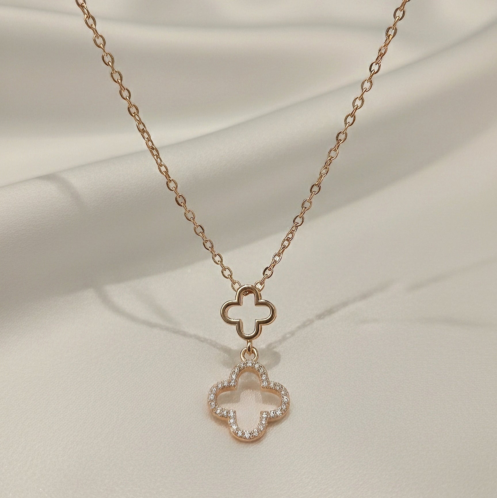 Add a touch of effortless elegance to your look with this Double Clover Anti-Tarnish Pendant Necklace. Designed with a sleek open clover motif and a delicate stone-studded clover drop, this piece blends minimal luxury with everyday comfort.