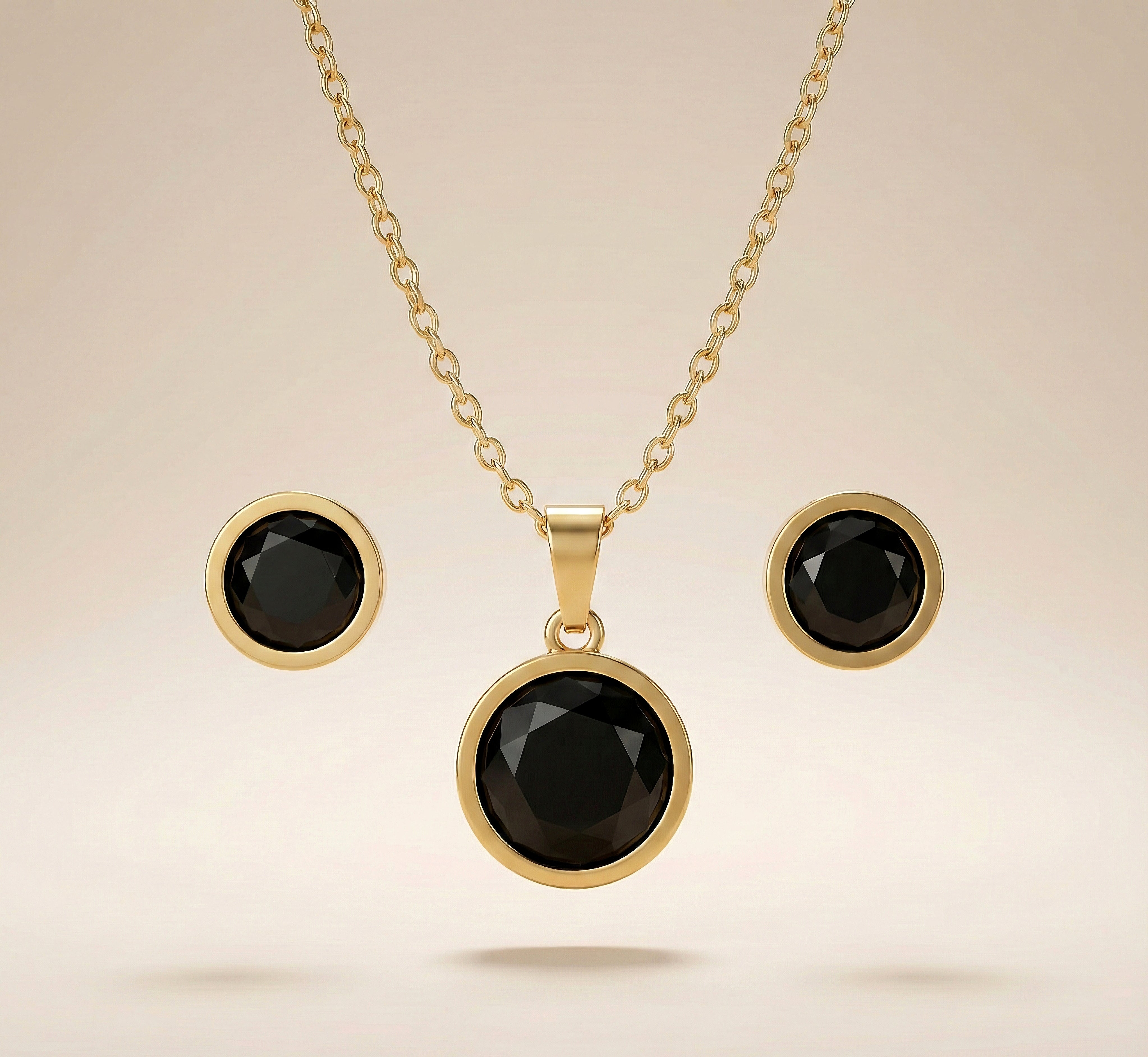 Elevate your everyday style with the Midnight Noir Black Stone Pendant Set, designed for women who love minimal yet powerful elegance. Crafted from high-quality stainless steel with anti-tarnish coating, this set features a sleek black stone pendant paired with matching stud earrings for a perfectly coordinated look.