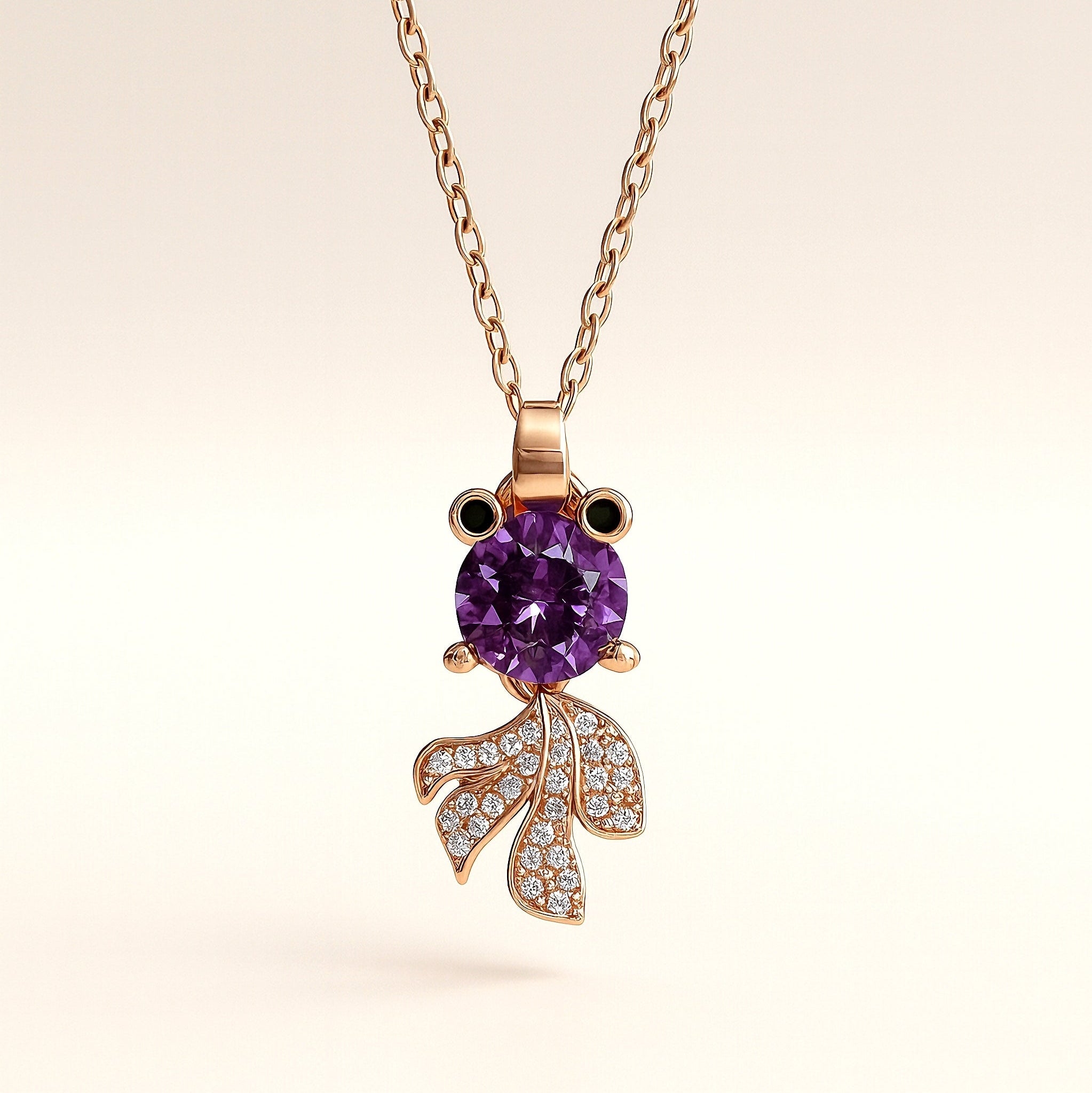 Crafted in a soft gold tone, the design blends a luminous purple stone with delicate crystal detailing inspired by the calm watchfulness of the night. The flowing silhouette feels alive, as if the pendant is gently listening, guiding, and protecting.