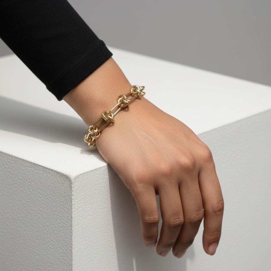 Our jewellery is imitation, beautifully gold-plated to give a luxurious real-gold look. Each piece is coated with a special anti-tarnish finish to retain its shine longer.